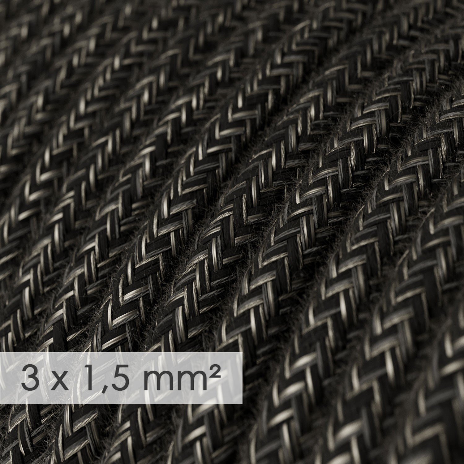 Kabel elektryczny o dużym przekroju 3×1,5mm², w lnianym oplocie antracyt melanż RN03
