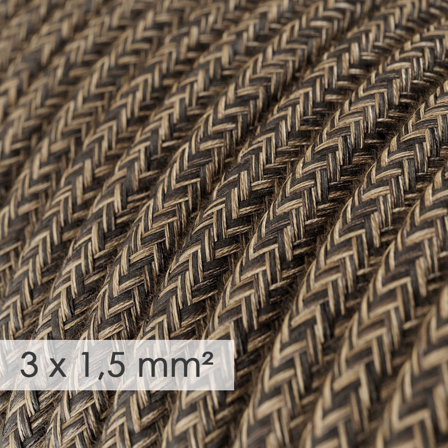 Kabel elektryczny o dużym przekroju 3×1,5mm², w lnianym oplocie brąz melanż RN04