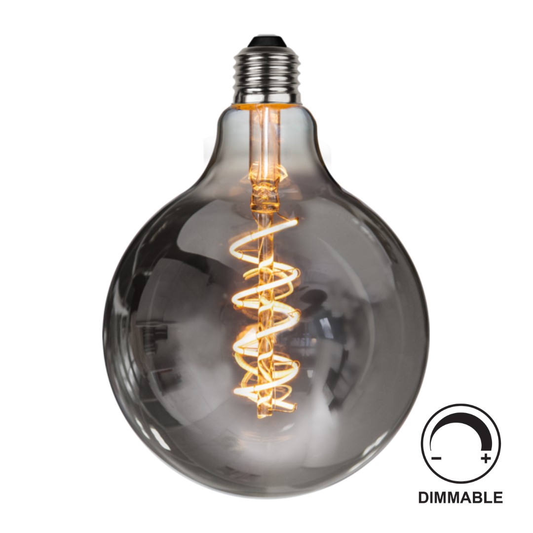 Żarówka G125 4W jest wykonana z szarego przypalonego szkła. Wygląda, jakby była przydymiona lub osmolona od ognia. Jednak nie oznacza to, że świeci na szaro. Cała żarówka daje światło ciepłe białe.